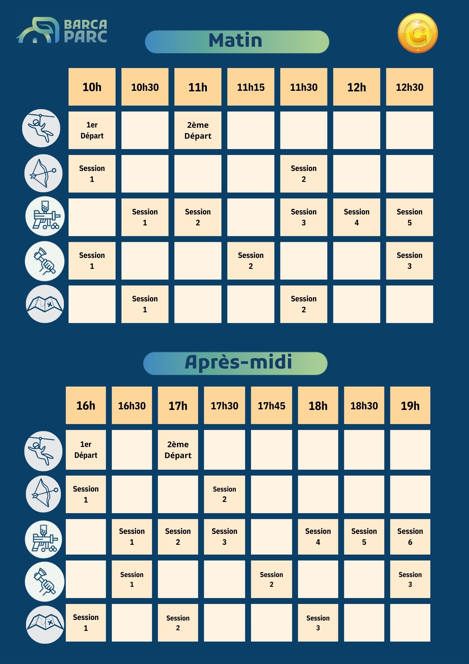 Indiquez-moi vos choix et le nombre de participants par mail à barcaparc@gmail.com.