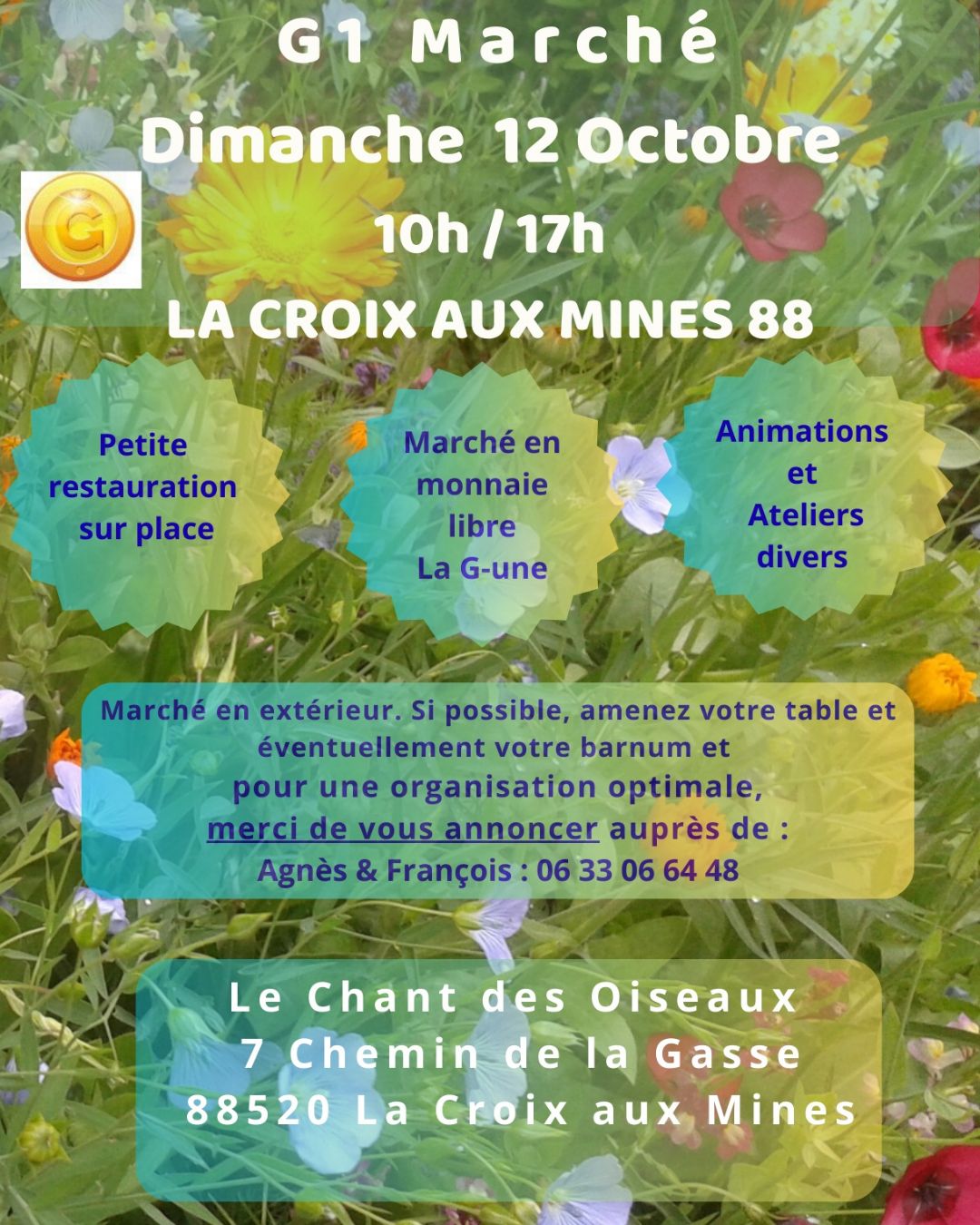 J’ai été déçu au premier gmarché dans ce lieu de n’avoir fait aucune connaissance locale dans cet endroit si proche de chez moi. J’attends aussi que des gens du coin proposent leur service car j’ai besoin de beaucoup de choses.
