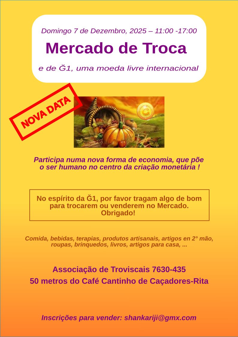 Por favor, inscreva-se para vir vender no mercado de domingo, 23 de novembro, e traga os seus amigos para conhecer a G1.