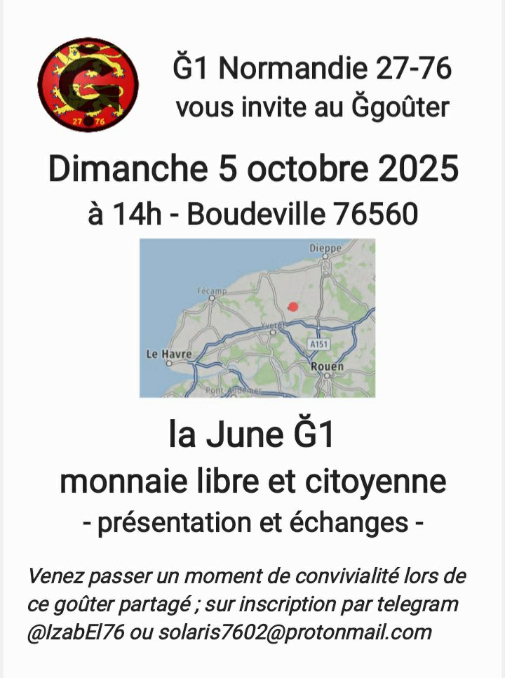 Cagnotte des Ğmarchés : 2AXiDFcovPMKPPBHrBB7tqnW8tYhp5nedeh8B7HxGwFi:8Q4 5 (Merci aux donateurs qui nous permettent de déployer la june en Normandie).