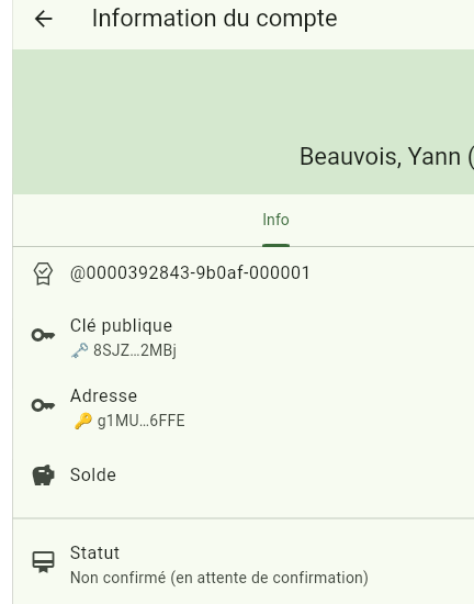 Ce post à l’origine était pour mettre la clef des nouveaux comptes que l’ont créé (puisqu’en test ns pouvons créer autant de comptes membres que ns voulons - aucune incidence sur la vrai Ǧ1). Le but étant de voir et tester le processus pour rentrer ds la toile de confiance.