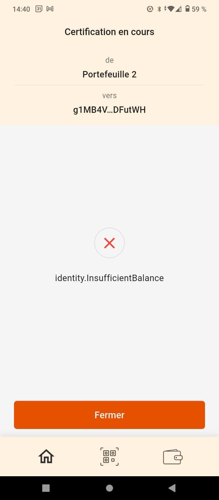 L’échec de la demande vient du fait qu’il s’agit de ton ancien compte membre que tu as migré vers un nouveau compte. Un ancien compte membre ne peut plus redevenir membre, comme un « compte révoqué » (un compte dont l’identité associée a été révoquée).
