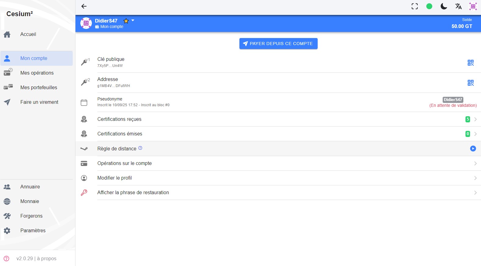 Ce compte a aussi mon ancienne clé publique de membre certifié sur la V1 :