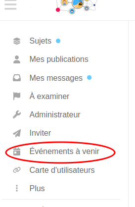 Le calendrier est accessible en cliquant simplement sur évènement à venir dans le menu à gauche.