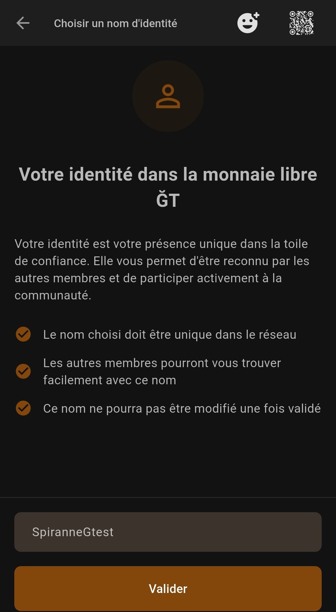 Si c’est le problème, l’application ne dit pas les caractère qui ne sont pas accepté quand on crée son identité.
