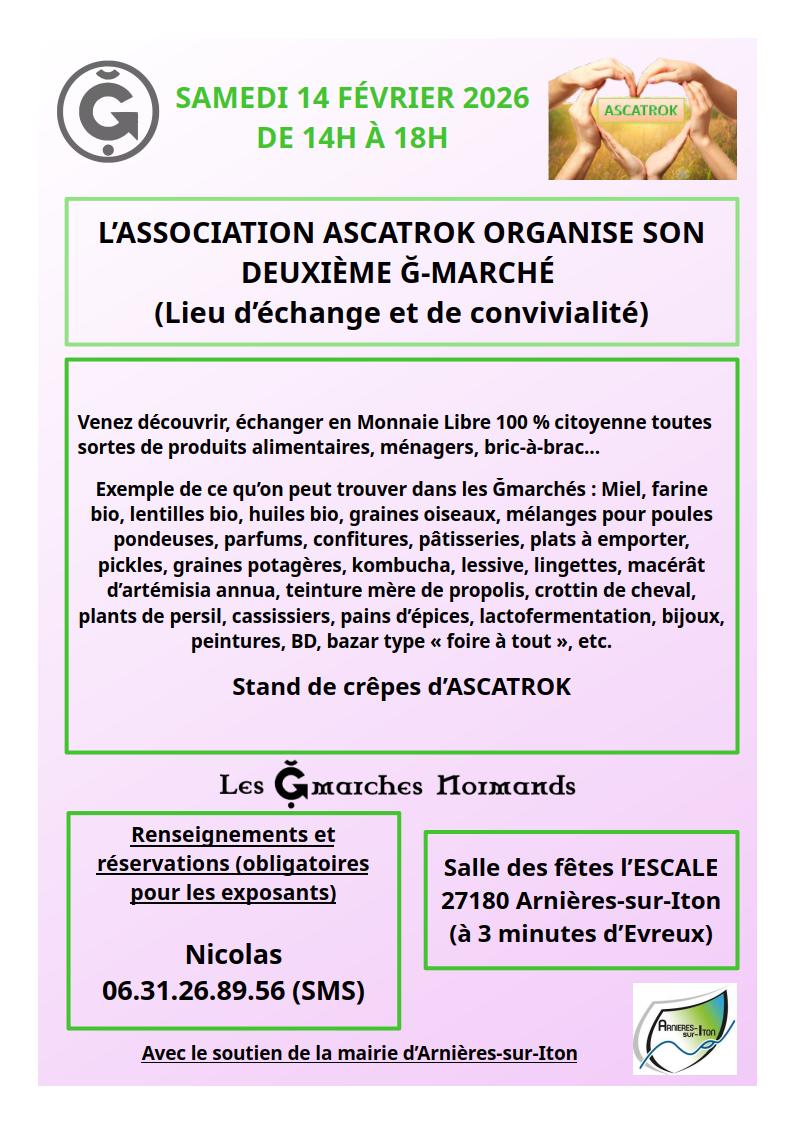 L’association ASCATROK organise son deuxième Ğmarché le 14 FEVRIER 2026 de 14H à 18H.