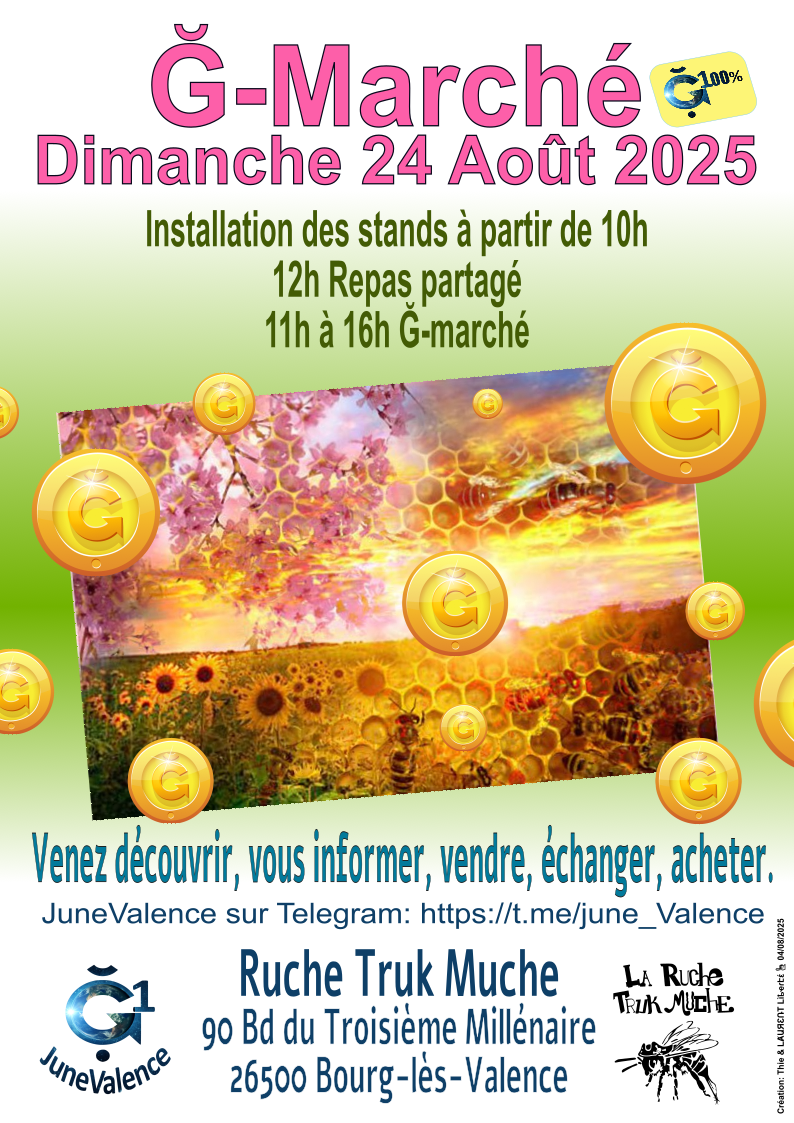 Bonjour, je suis juniste d’Alsace et maintenant je vis en itinérance. Je serai heureuse de participer au G Marché du 24 août… Je n’ai pas d’accès au réseau sociaux et pas de téléphone portable.
