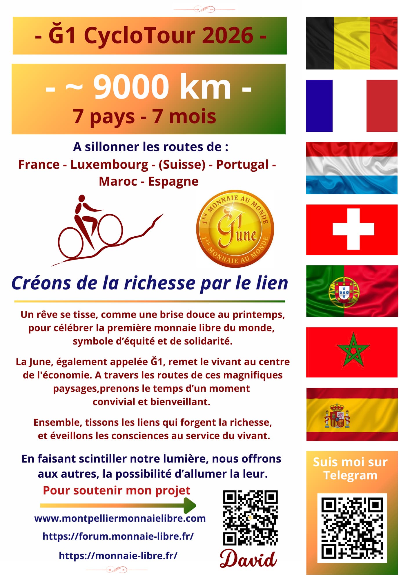 Le 26 mars, je remettrai les roues en mouvement pour promouvoir la monnaie libre et rencontrer les différents acteurs du changement, tissant des liens aussi solides que des racines pour créer de la richesse par le lien.