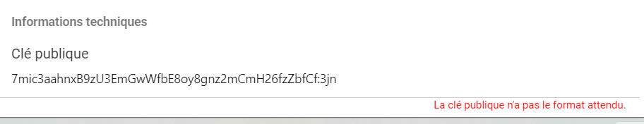 En voulant changer ma clef publique dans Gchange , celle précédemment inscrite étant un portefeuille non membre, ma clef suite a un copier coller n’est pas reconnue .