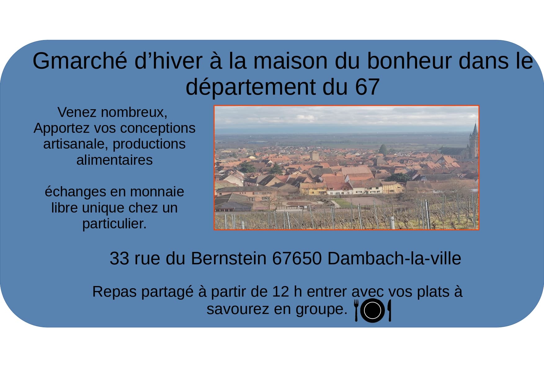 bienvenue à ce tout nouveau gmarché chez notre amis Patou, voila une autre occasion de se retrouver autour d’un repas en commun et des ventes en june, pendant une bonne partie de la journée.