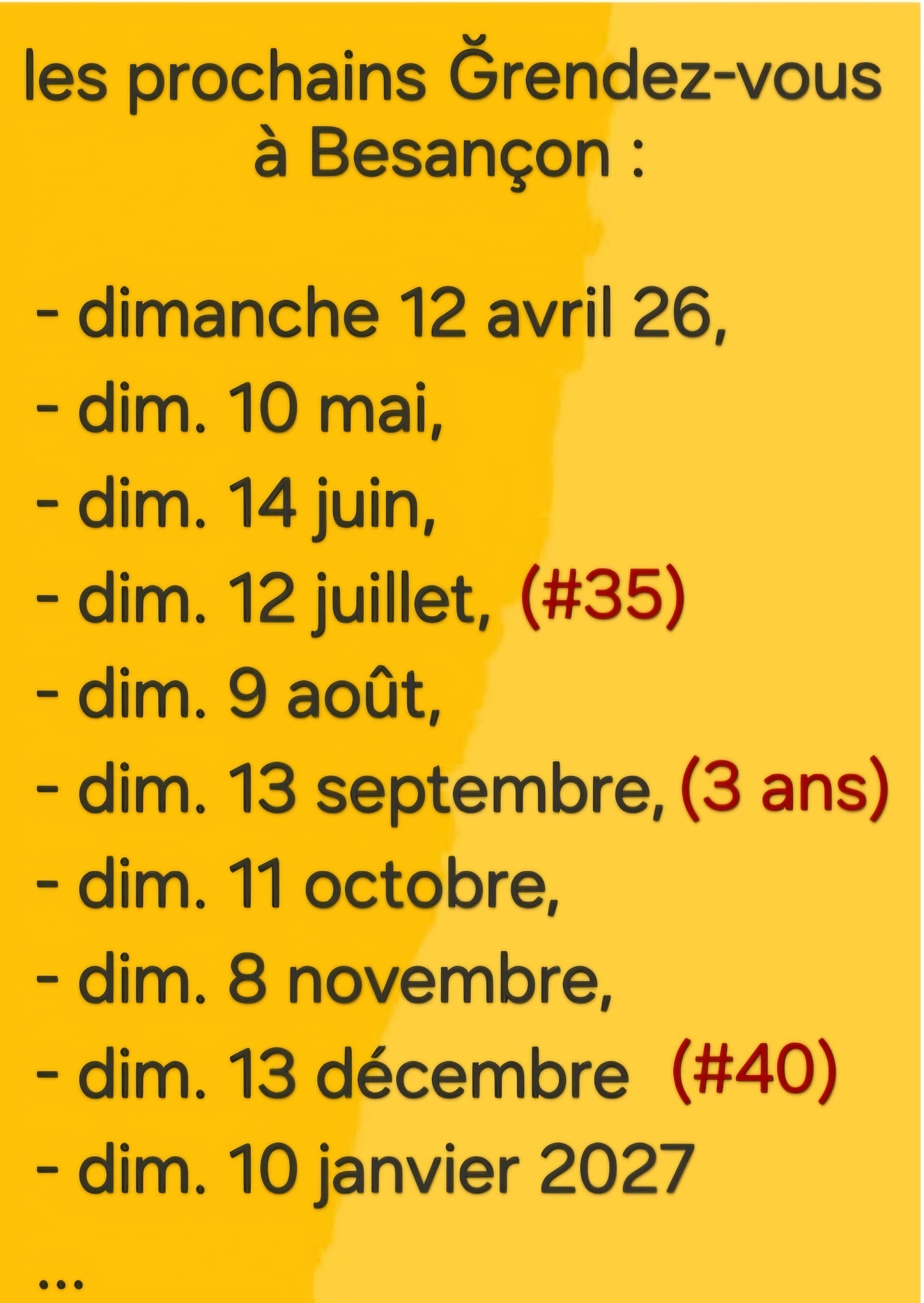 le Ğrendez-vous de Besançon a lieu comme d’habitude le 2è dimanche de chaque mois