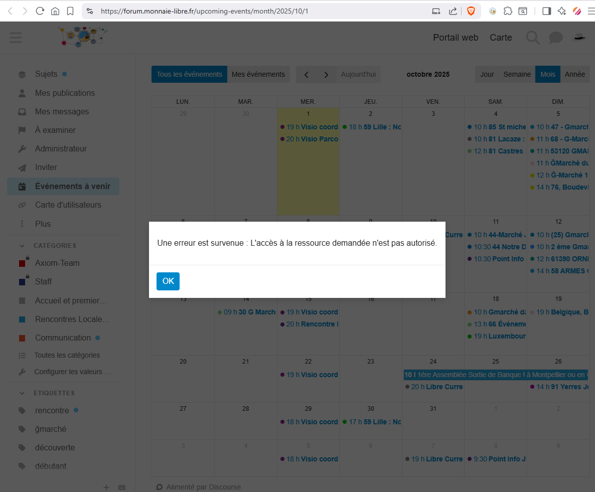 De ce que j’ai compris, les événements enregistrés sur le forums remontent automatiquement sur la carte et sur la partie “Agenda”. Hors, depuis quelques temps, plusieurs semaines de mémoire, je ne vois plus rien dans la section