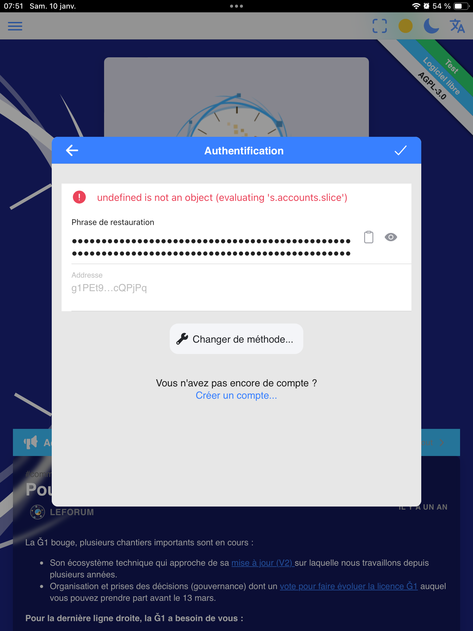 Je viens d’installer Cesium2 sur mon iPhone et j’ai fait un essai de connexion à mon compte membre.