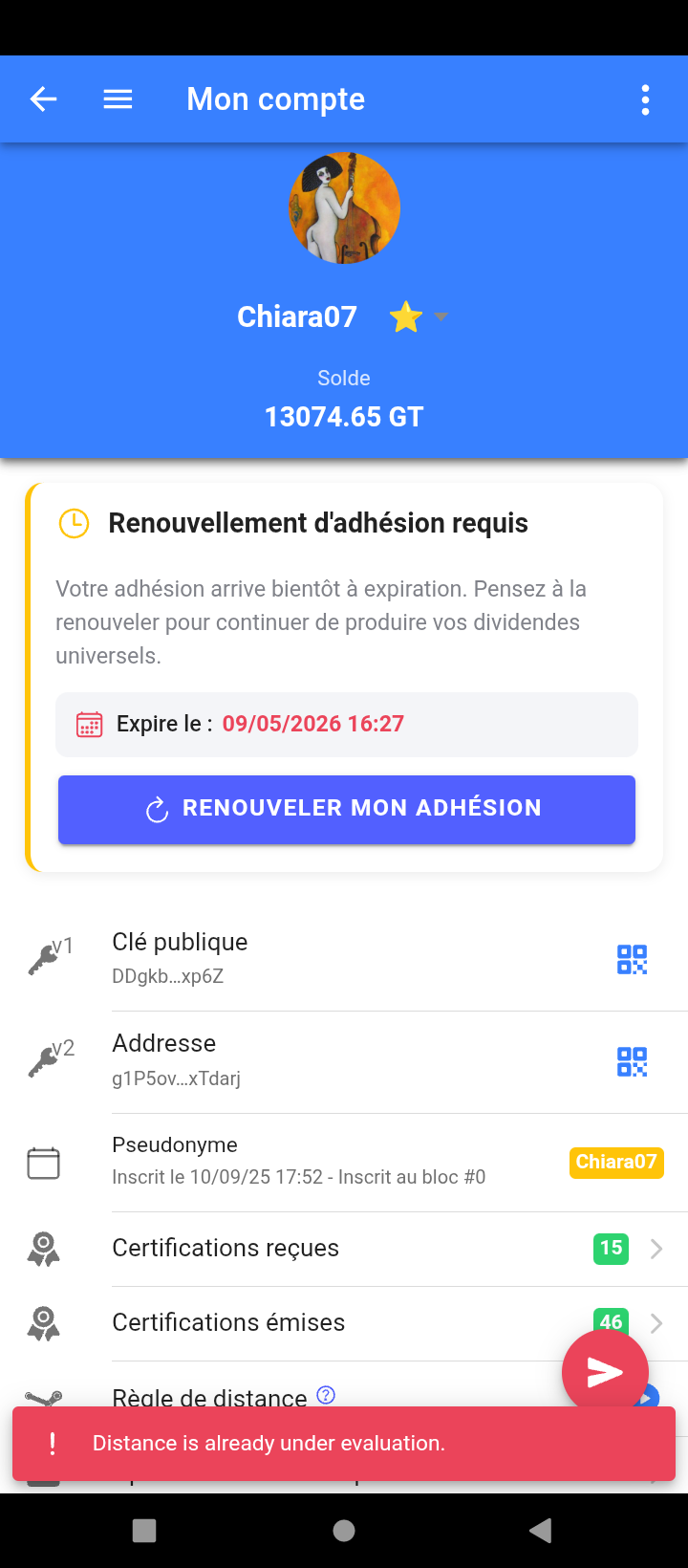 Quand je change de vue et que je reviens sur la vue « Mon compte », la ligne « Règle de distance » n’affiche plus le résultat. Il faudrait conserver et afficher le dernier résultat, éventuellement avec un fond gris ou jaune s’il a été calculé il y a longtemps.