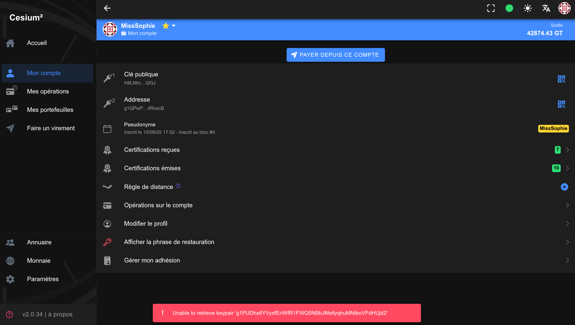 J’ai testé la connexion et le transfert avec succès. N’étant pas membre sur cette instance de la ĞTest, je n’ai pas pu tester les opérations réservées aux membres.