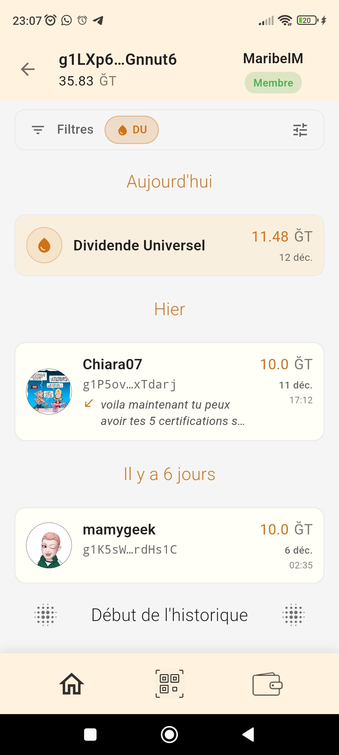 Le montant du DU pris en compte par Duniter v2 pour le calcul du solde du compte tout frais de MaribelM est du montant de 15.83 ĞT au lieu de 11,48 ĞT.